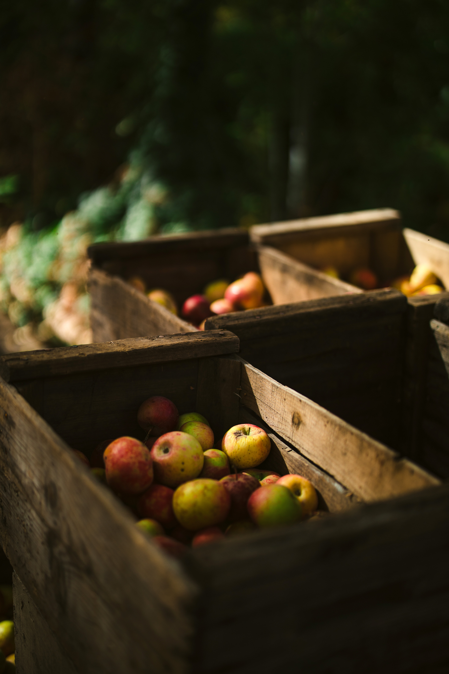 Still, something about this moment felt timeless — classic wooden apple crates stacked in a row, glowing in the warm afternoon sun. A quiet, nostalgic scene with texture, history, and softness.
